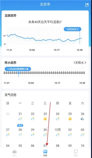 4、接着回到首页,点击预报板块,就能查看你所在地区的天气预报了。