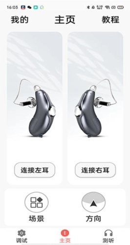 4、进入软件主页后,开启手机蓝牙功能,连接上助听器设备即可使用。