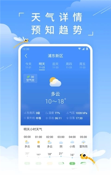 每日的天气播报,精准到每分钟的动态,助你明晰全天天气的演变趋势;