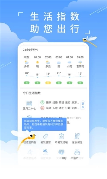 有出行、钓鱼、亲子和运势四个场景化的服务,为你计算好每一天外出的生活指数;