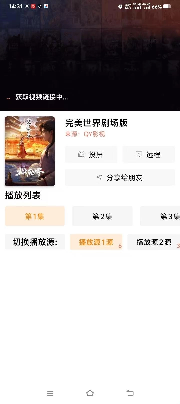 2、接着在视频简介页面找到“切换播放源”,点击右侧的播放源1、播放源2……就能完成切换。