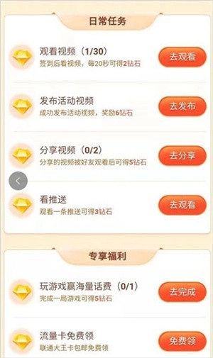 4、完成对应的日常任务可以获得钻石;
