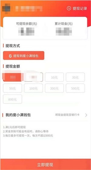 5、每1000钻石可兑换1元,点击“立即提现”按钮即可完成操作。
