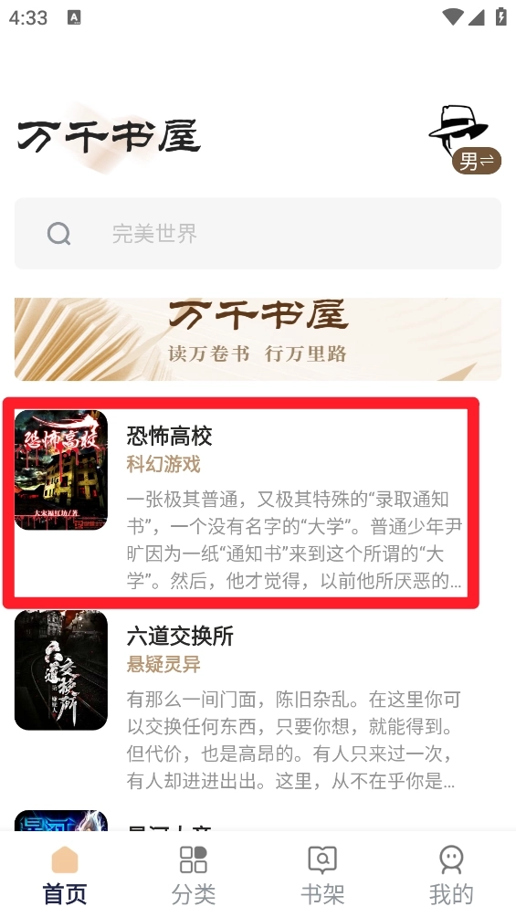 1、启动软件后,在首页找到想要添加到书架的目标小说并进行选择。
