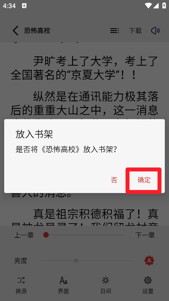 2、进入阅读界面退出后会弹出提示框(如图所示),点击“确定”按钮就能将其加入书架。