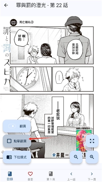 4、如图所示,在阅读界面还可以设置翻页、下拉式等。