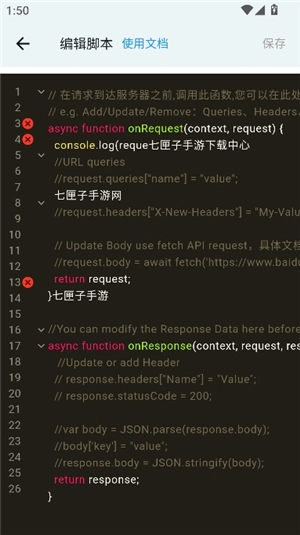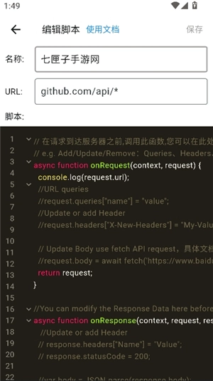 脚本代码支持直接修改与编写,编辑完成后点击右上角的“保存”按钮即可生效。