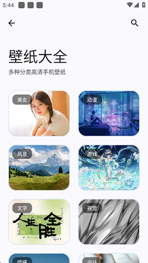 以壁纸大全为例,点开该选项会呈现多种壁纸。