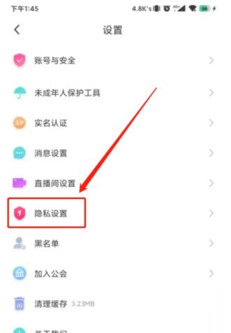 进入系统设置界面后,找到并点击与隐私相关的入口,即可进入对应的隐私管理页面。