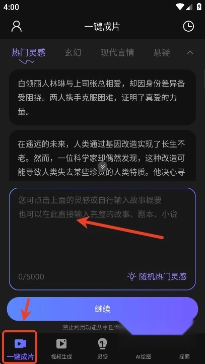 用户只需借助一键成片的功能,输入自己的创意想法,就能快速生成对应的视频内容。