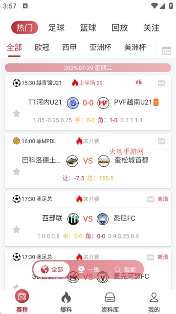 即可为您推荐精彩比赛