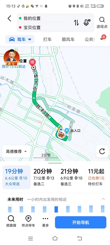 家长端的定位查看功能位于小天才首页的下方第二个模块,可以进行实时定位,同时还能查看孩子周边状况、历史行动轨迹、全天守护情况以及孩子的心情状态。当成功定位到孩子的位置后,家长可以直接点击导航按钮,系统会自动跳转至第三方导航软件。