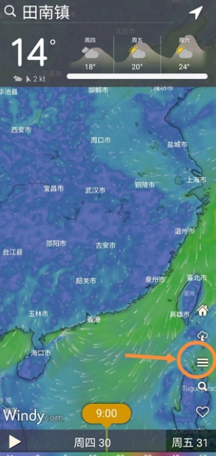 安装好windy气象软件中文版,打卡进入到首页