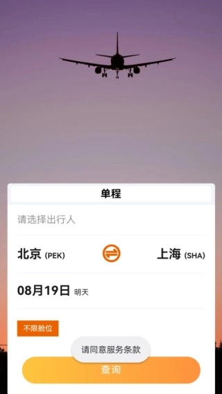 进入航班查询界面后,输入所需的相关信息,点击查询按钮即可直接获取机票信息。