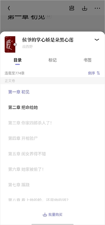 轻点屏幕,唤出菜单栏,点击左下角的“目录”即可