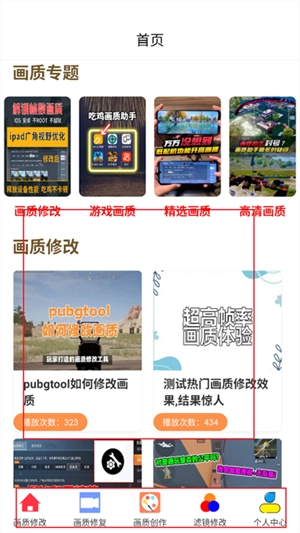 打开软件后,能看到画质修改、画质修复、画质创作和滤镜修改这四个功能选项。