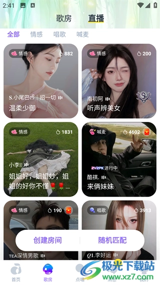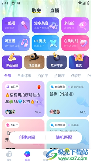 2全天无休的歌房,抢唱、点唱、PK 嗨不停,快来走进更多直播间,开启趣味互动之旅!