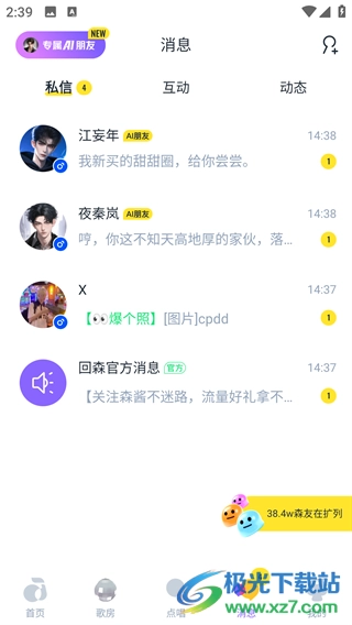 3、在消息一览中可以看到其他用户给你发的私信;