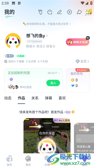 1. 打开软件并进入首页,在此处能够看到发布的作品。