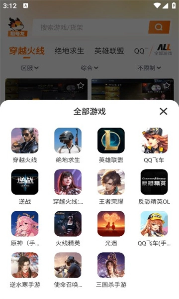 2、搜素自己想要的游戏账号,可以通过分区进行筛选