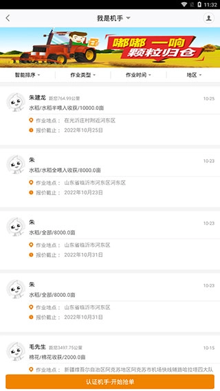 接着点击顶部的下拉选择框,切换到【我是机手】的页面。