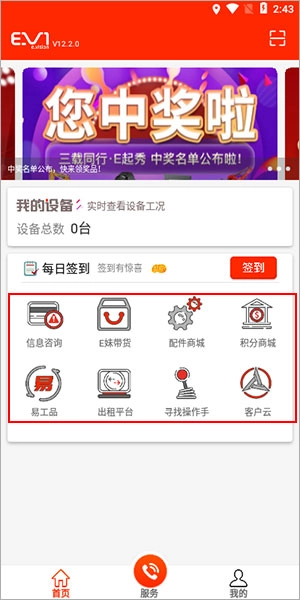 打开易维讯App软件,点击服务;