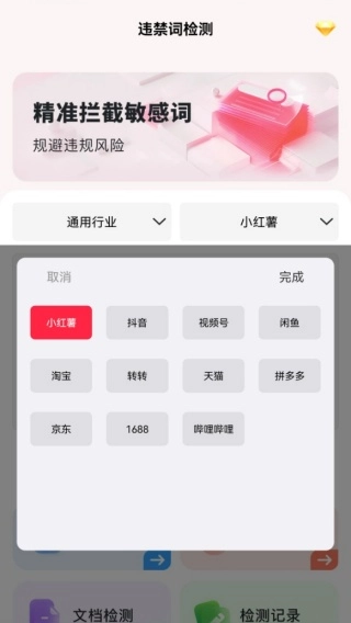 进入查词界面后,可选择行业、查询平台,输入内容并直接进行检测。