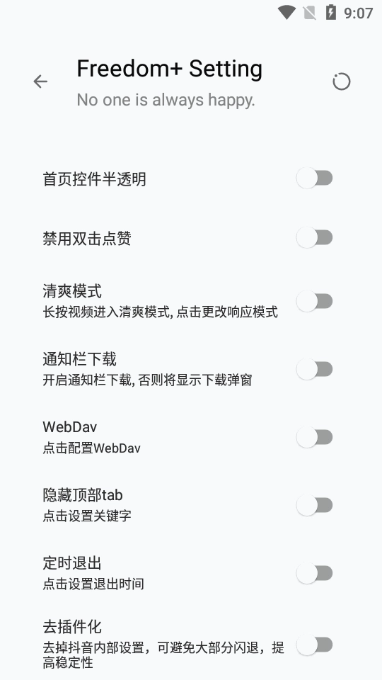 抖音增强模块Freedom+/FreedomPlus的首页控件采用半透明设计以防止烧屏