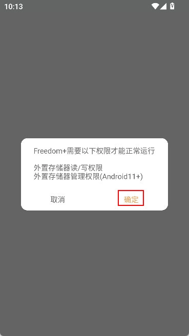 首次打开时,需要获取外置存储器的读/写权限,若使用Android 11及以上系统,还需获取外置存储管理权限,直接点击确定即可。