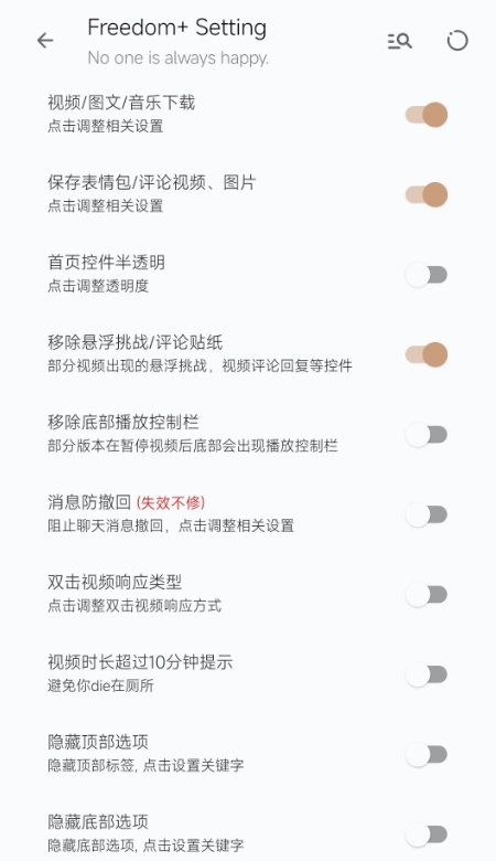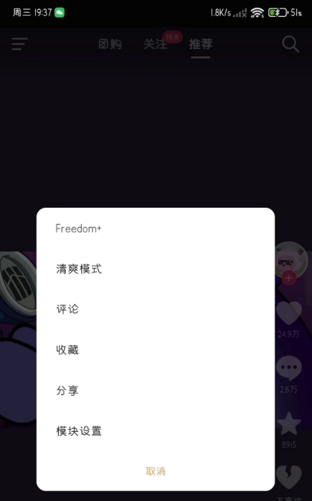 抖音增强模块Freedom+/FreedomPlus的首页清爽模式可隐藏大部分控件
