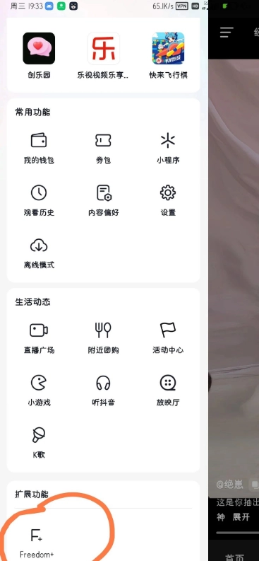 Freedom开启方法:打开抖音APP首页后,点击左上角的三条横线图标,此时左侧会弹出菜单列表,接着将菜单向下滑动至底部,在扩展功能区域即可找到。