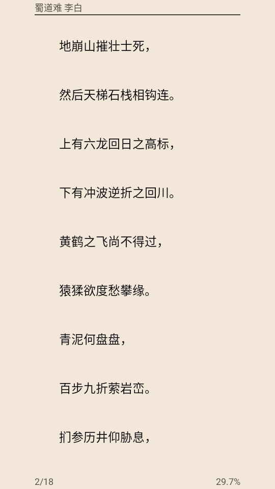 随意点开一篇,就能在线阅览,这里拿李白的《蜀道难》来举例。