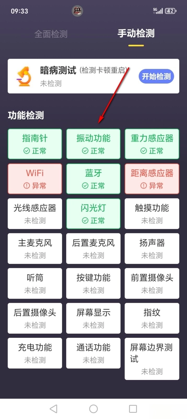 或者点击【手动检测】去单独检测一个个功能