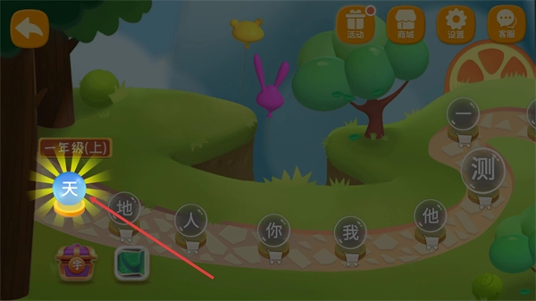 在学习关卡界面,找到对应“一年级(上)”的“天”字按钮,点击这个按钮就能进入该字的学习环节。