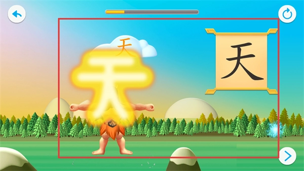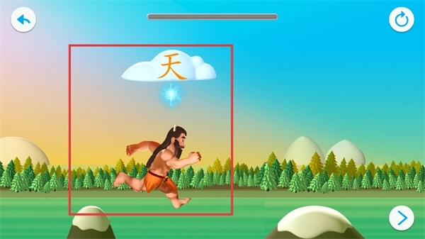 进入【天】字学习页后,页面会呈现包含【天】字的动画场景,借助这个场景能够直观地理解与该字相关的内容。
