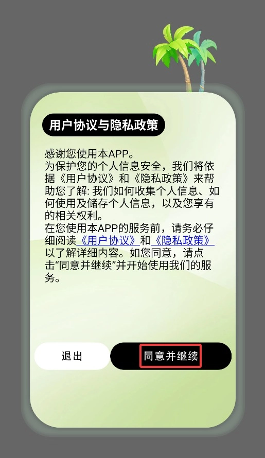 首次打开应用时,需点击弹窗里的“同意”按钮,这样才能进入主界面正常使用。