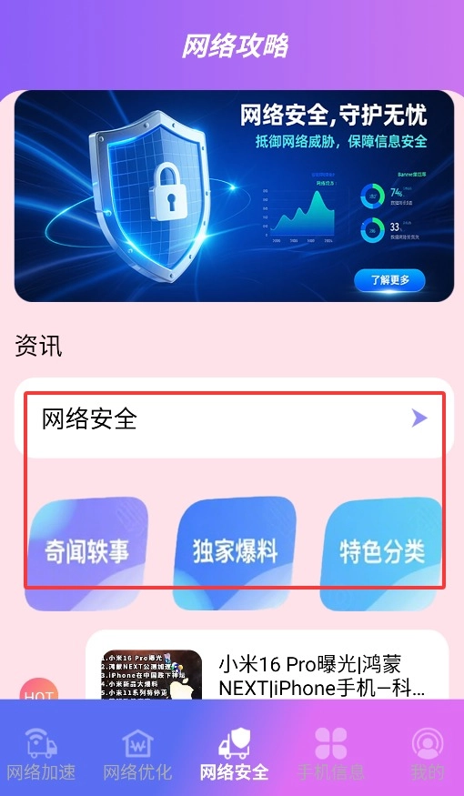 进入安全资讯页面后,你可以浏览网络安全动态、奇闻轶事以及独家爆料等内容。