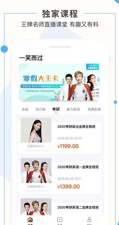 《一笑而过》是一款功能强大的英语学习软件,能为用户提供海量丰富的课程资源。学习需要匹配个人的教学体验,以带来最适合的学习模式,这里还有大量直播课程,用户可进入直播间与老师互动,提出疑问,不同类型的英语学习内容也能满足个性化需求。