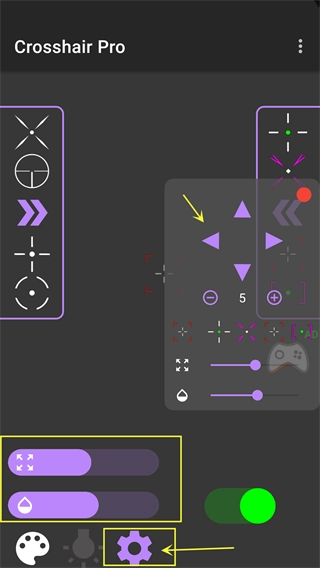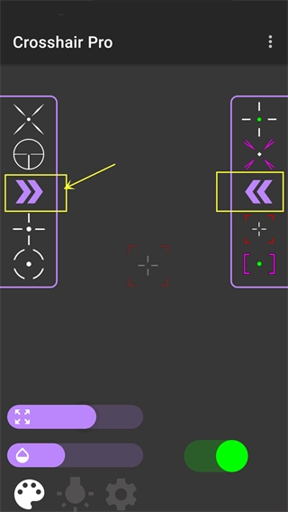 点击底部中间位置的灯泡按钮,就能开启准星的发光模式。