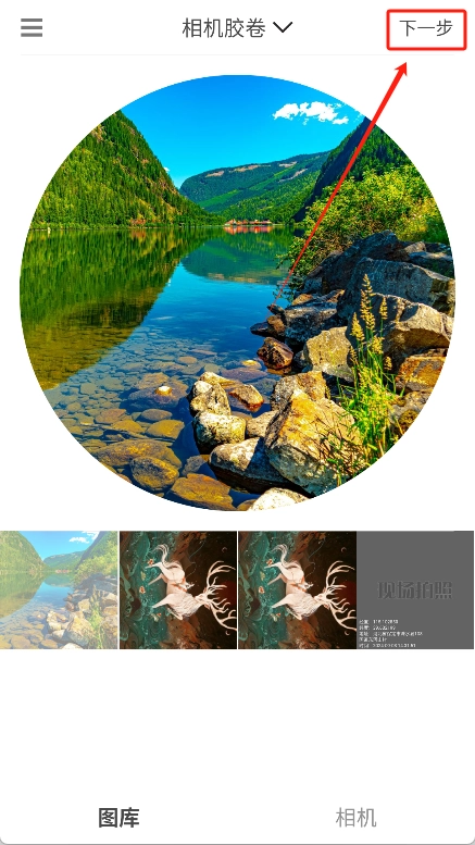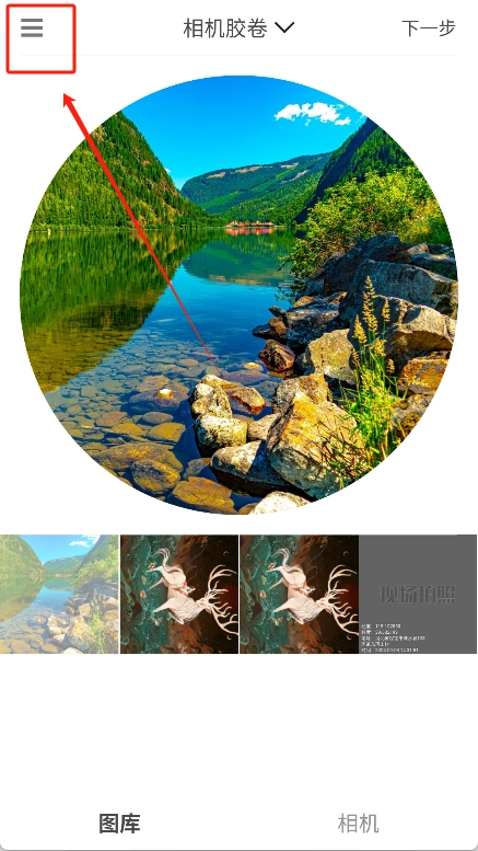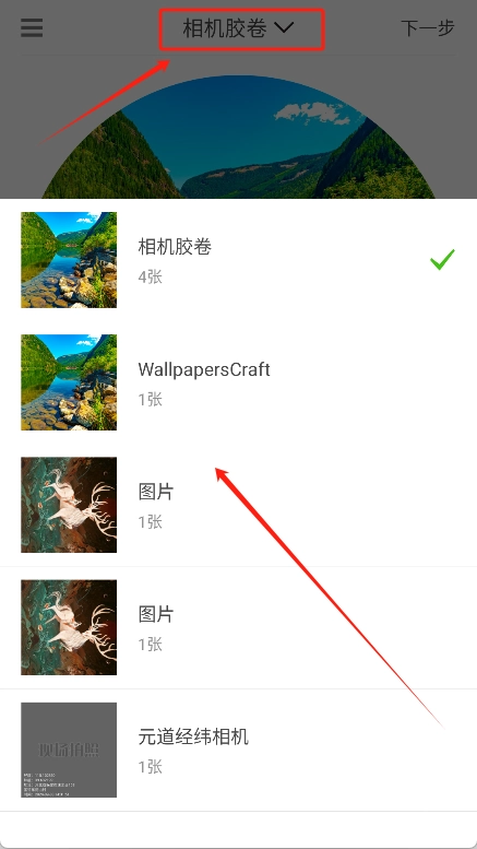 然后点击上方的“相机胶卷”下拉菜单,就能从手机图库中选择你想要的图片。