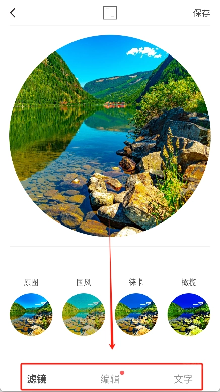 在把各项参数都设置妥当后,点击界面右上角的“保存”按钮,就能将编辑完成的图片或视频存储到手机当中了。
