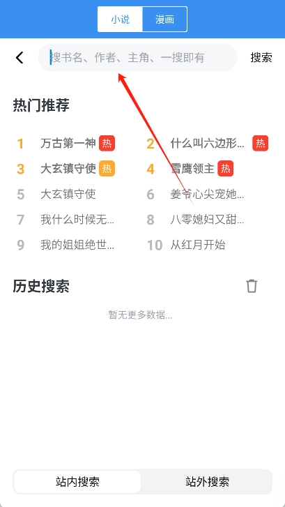查找小说:用户可点击首页的搜索栏,输入关键词来搜索小说。
