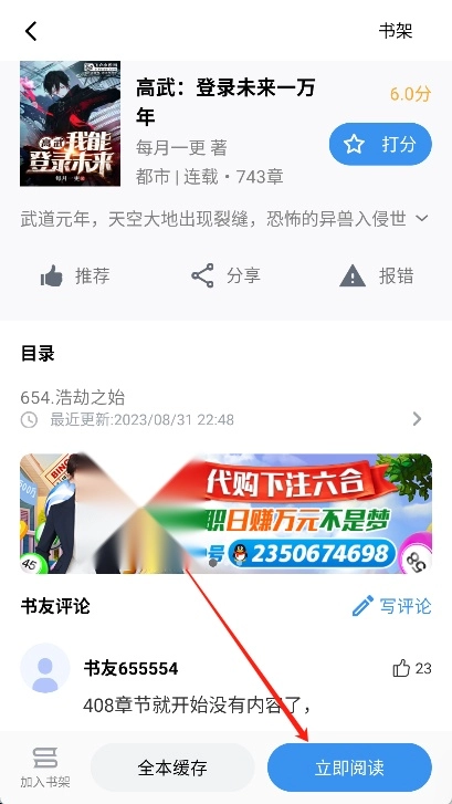 阅读小说:找到想读的小说后,点击“立即阅读”按钮就能开始阅读。