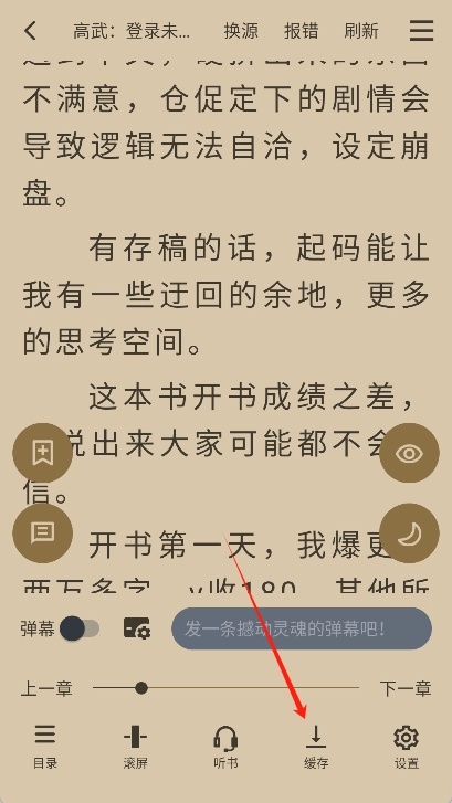 关于缓存功能:若用户想在无网络时阅读小说,可点击“缓存”按钮将小说保存至本地。