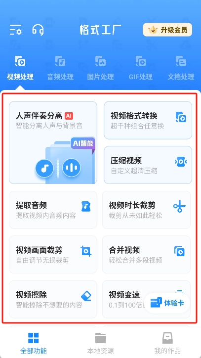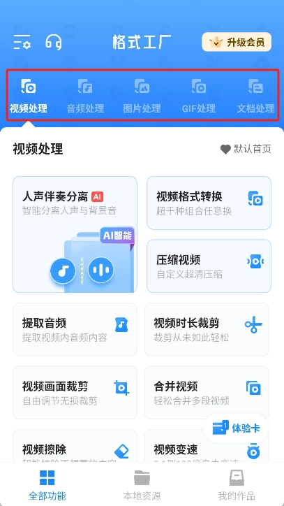 选择转换格式的操作步骤如下:先选定对应的格式类型,比如若打算进行视频转换,在点击“视频处理”选项后,再挑选出需要运用的具体功能。