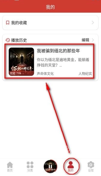 然后回到主界面,点击底部的“我的”选项,“播放历史”中存放的就是缓存内容。