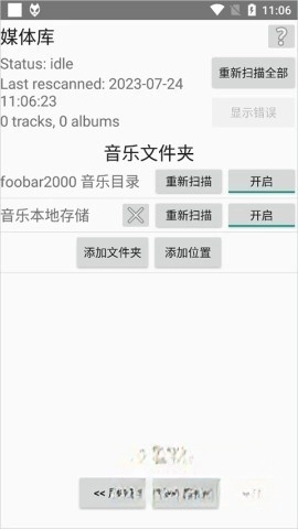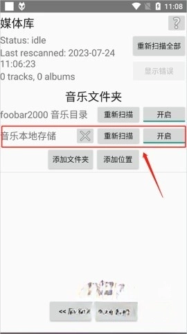 打开foobar2000手机应用,确认扫描本地存储的功能处于开启状态。
