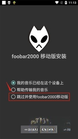 选择“跳过并使用foobar2000移动版”来完成简单的设置操作。