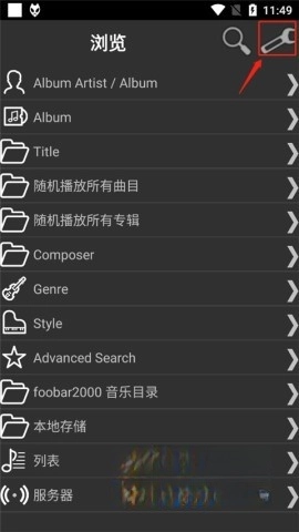 打开foobar2000软件,找到界面右上角的扳手形状图标并点击,即可进入设置页面。