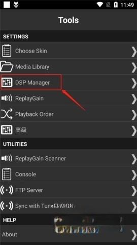 在设置页面选择“DSP Manager”。